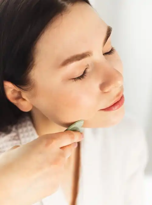 Gua-Sha stone Facial eases facial tension, improves blood Flow, De-puffs and for a brighter and healthier complexion.